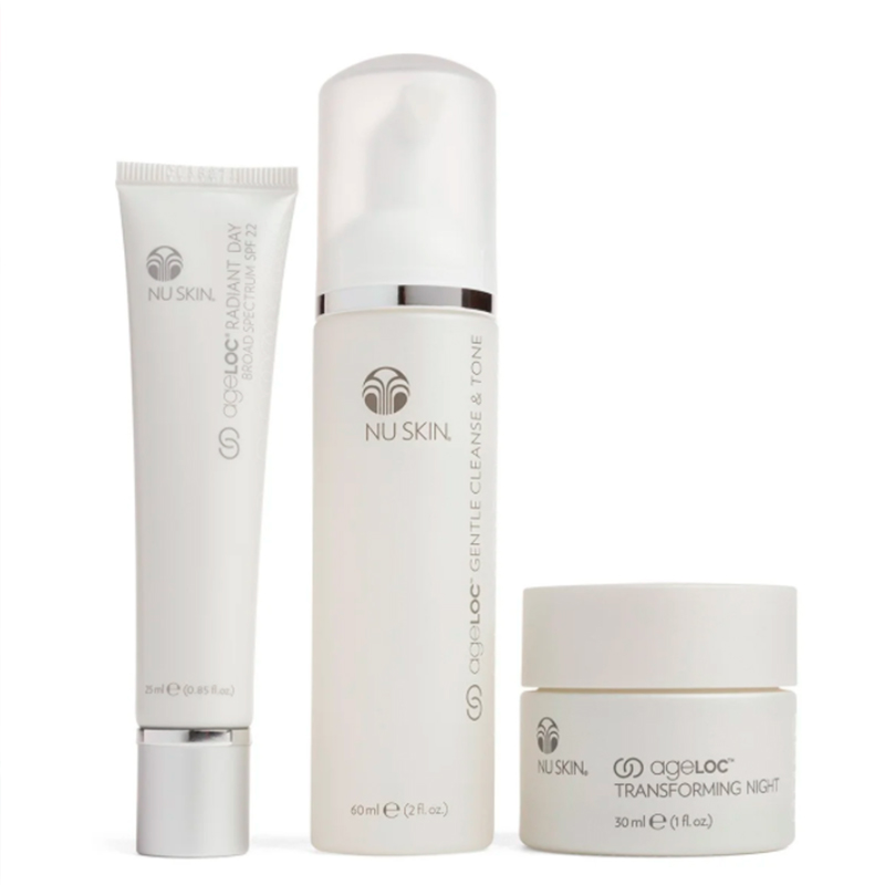 ageLOC® Radiant Day SPF 22: Aqua, Glycerin, Homosalate, Ethylhexyl Salicylate, Butyl Methoxydibenzoylmethane, Cyclopentasiloxane, Cetyl Dimethicone, Octocrylene, Acrylamide/Sodium Acryloyldimethyltaurate Copolymer, Caprylyl Glycol, Glyceryl Stearate, PEG-100 Stearate, Methyl Gluceth-10, Isohexadecane, Dimethicone, Cyclohexasiloxane, Hydrolyzed Jojoba Esters, Glucosamine HCL, Pisum Sativum Extract, Butyrospermum Parkii Butter, Butylene Glycol, Bambusa Vulgaris Leaf/Stem Extract, Jojoba Esters, Schizandra Chinensis Fruit Extract, Narcissus Tazetta Bulb Extract, Hexapeptide-2, Nylon-12, Aluminum Hydroxide, Hydrated Silica, Myristyl Alcohol, Steareth-2, Steareth-21, Polysorbate 80, Sorbitan Oleate, Cetyl Alcohol, Dimethicone/Vinyl Dimethicone Crosspolymer, Stearyl Alcohol, Disodium EDTA, Citric Acid, Parfum, Phenoxyethanol, Chlorphenesin, Potassium Sorbate, CI 77891.