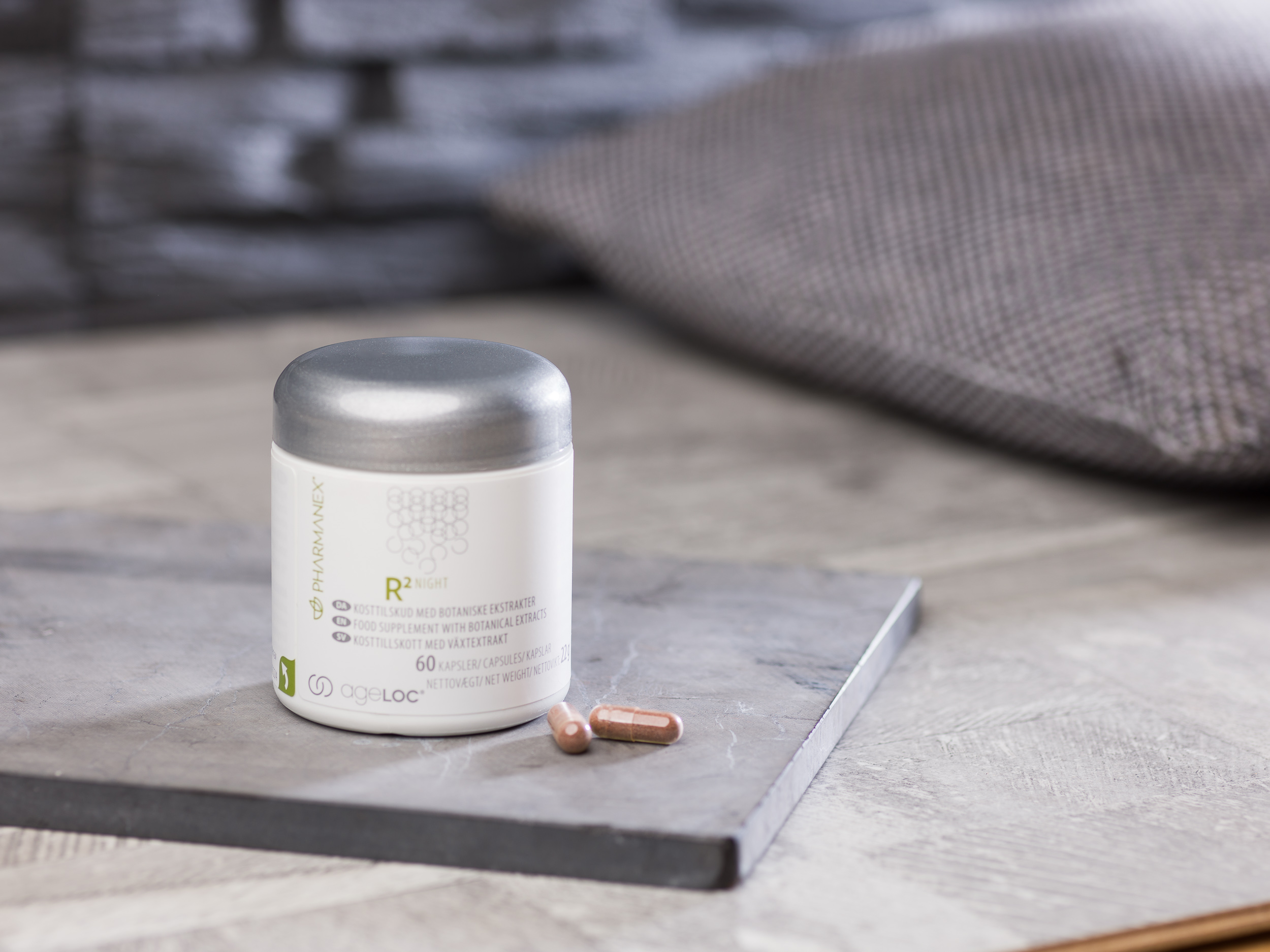 Toma dos (2) cápsulas de R² Night por la noche.